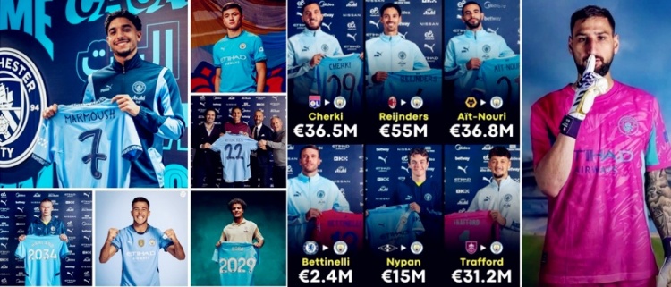 2023夏窗,曼城引进格瓦迪奥尔、马特乌斯·努内斯、多库和科瓦契奇的花费达到了2.41亿欧元,通过出售帕尔默、马赫雷斯、拉波尔特、特拉福德和扬赫尔·埃雷拉等人回收1.14亿欧元。2024夏窗,“曼城超市”的销售额再创新高,阿尔瓦雷斯、坎塞洛、哈伍德·贝利斯、塞尔希奥·戈麦斯、佩罗内、扬·科托和汤米·多伊尔为蓝月军团带来了超过1.4亿欧元的收入。